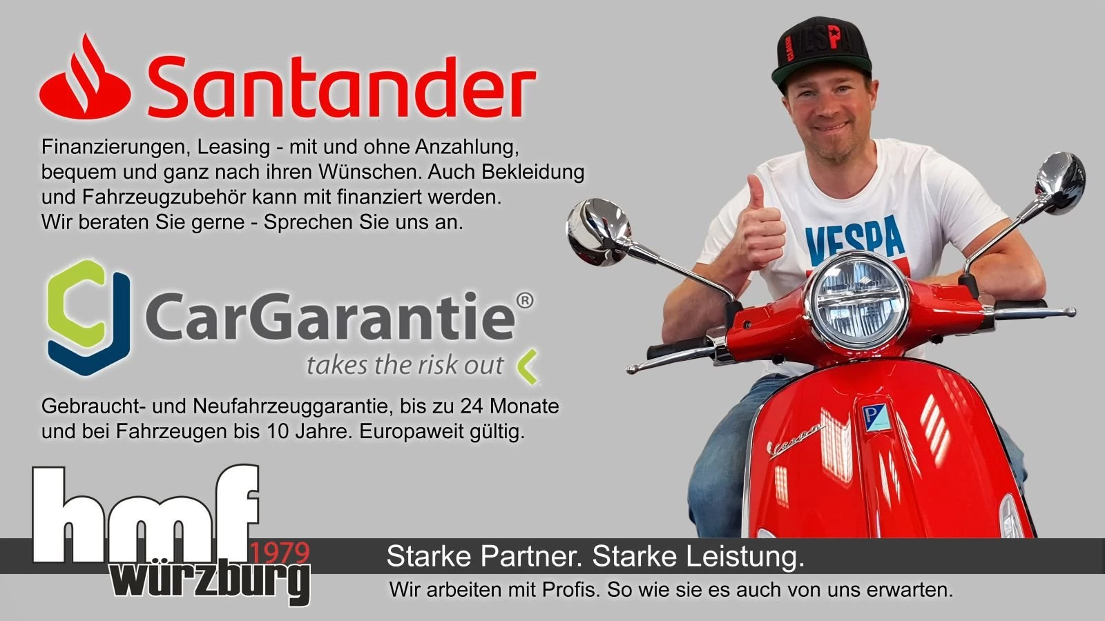 Wir sind ein 1979 gegründetes, familiengeführtes in Würzburg / Mainfranken, mitten im Herzen Deutschlands. Vertrauen Sie auf unsere über 40 jährige Erfahrung im Zweiradbereich. hmf ist offizieller Vertragspartner von Yamaha, Triumph, Zero Motorcycles, Vespa, Piaggio und Aprilia-LKR.